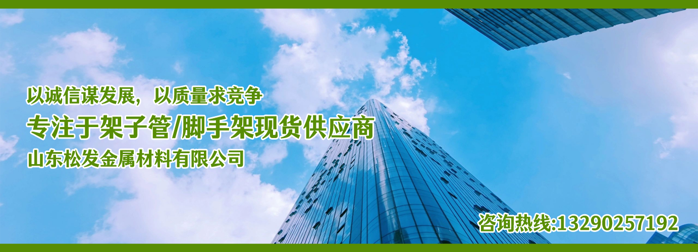 山東松發(fā)金屬材料有限公司主營架子管,扣件,鋼跳板,盤扣腳手架,輪扣腳手架,鋼支撐生產(chǎn)廠家。本廠專業(yè)生產(chǎn)銷售。 建筑用架子管、 主要用于房建,橋梁,鐵路,公路,地鐵,水庫,隧道,支撐。 架子管,扣件,鋼跳板,盤扣腳手架,輪扣腳手架,鋼支撐的優(yōu)越性及應(yīng)用“ ”產(chǎn)品因具有結(jié)構(gòu)簡單合理、設(shè)計巧妙、使用方便、安全、快捷、易于運輸、儲存、維護(hù)簡單等特點。 公司一貫堅持“質(zhì)量,用戶至上,優(yōu)質(zhì)服務(wù),信守合同”的宗旨,憑借著高質(zhì)量的產(chǎn)品,良好的信譽,優(yōu)質(zhì)的服務(wù),產(chǎn)品暢銷全球。歡迎廣大客戶來電洽談,共同發(fā)展,共創(chuàng)輝煌! 山東松發(fā)金屬材料有限公司秉承誠信服務(wù)、恪守信譽的宗旨,在同等的質(zhì)量下,保證以最低的價格,最完善的服務(wù),最高的信譽來答謝各界朋友的支持和厚愛,歡迎您的來電、咨詢,我們將竭誠為您服務(wù)!...